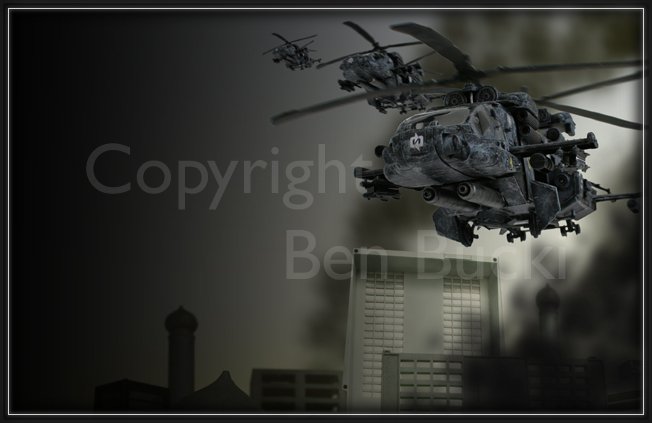 Home-built miniatures, 1/32nd scale (digital composite image). Concept art for graphic novel collaboration.